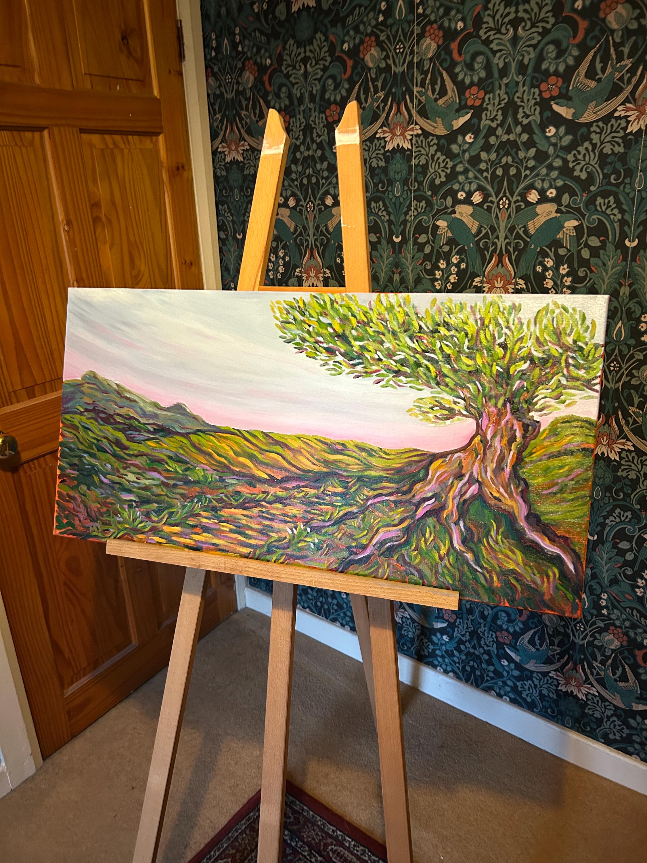 A panoramic landscape in my bold colourful style of psychedelic impressionism. I have used a '3D' canvas which has a 35mm depth.