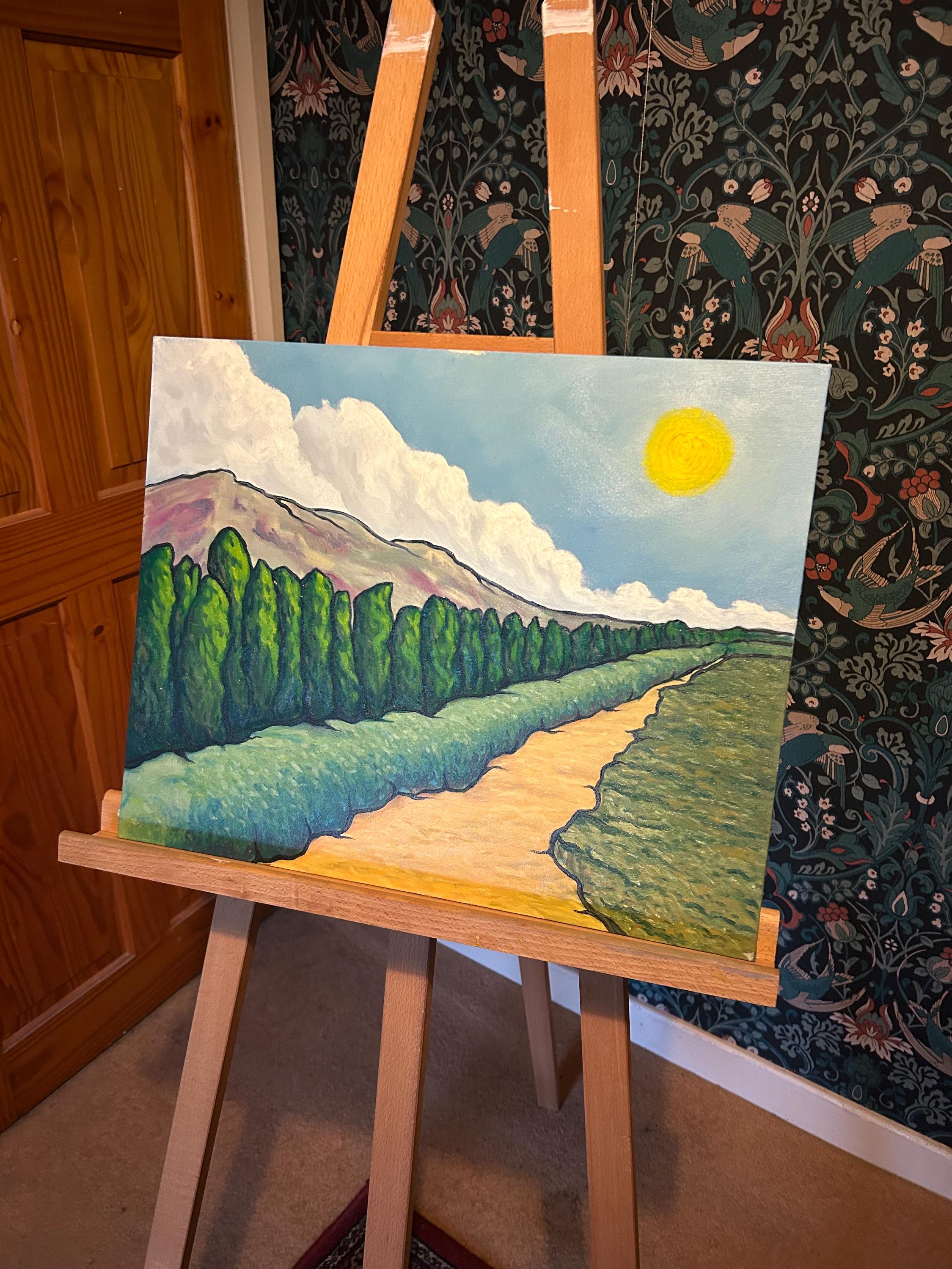 A landscape in my bold colourful style of psychedelic impressionism.