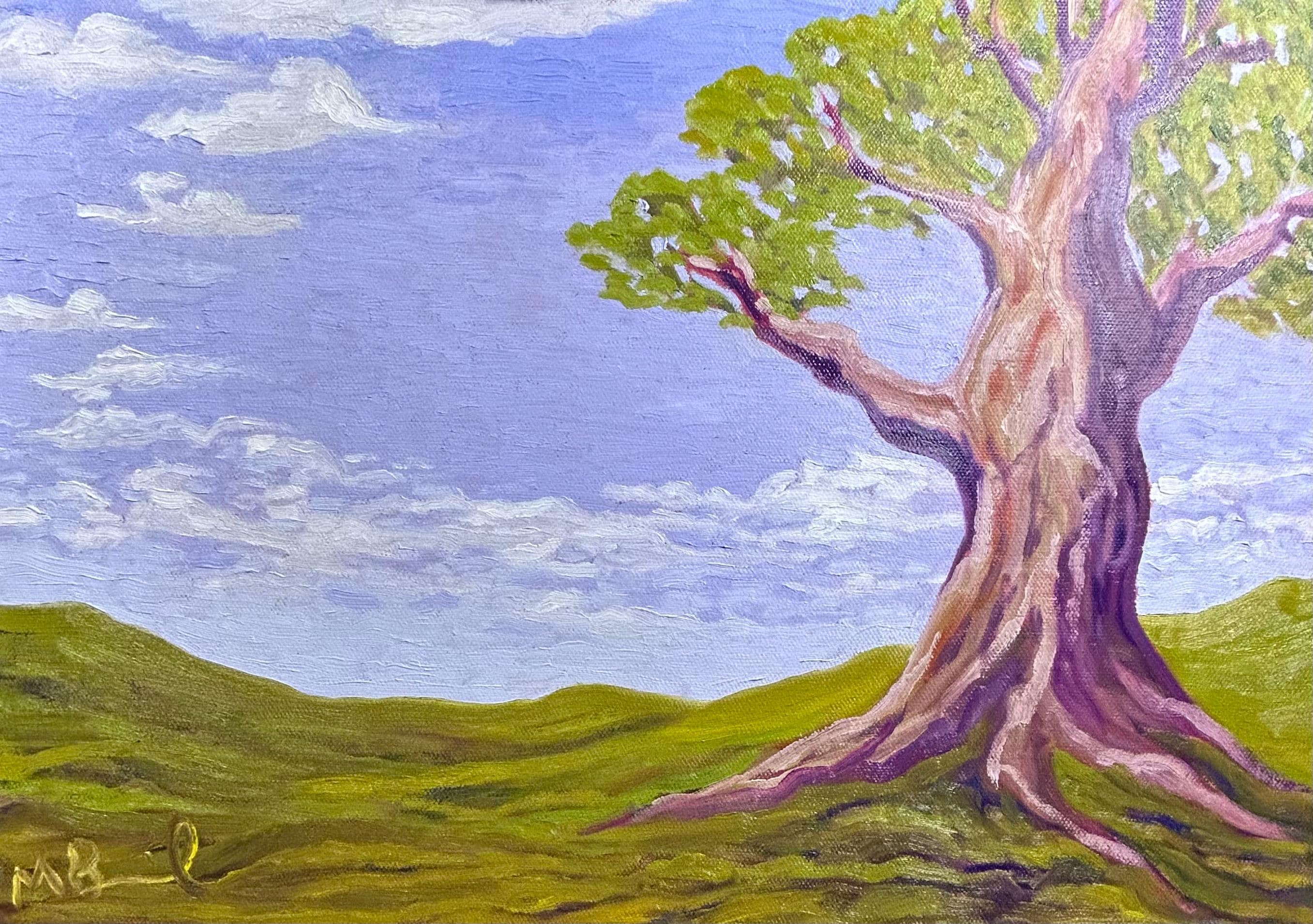 The piece is painted on a canvas board, and will need framing or mounting to hang.