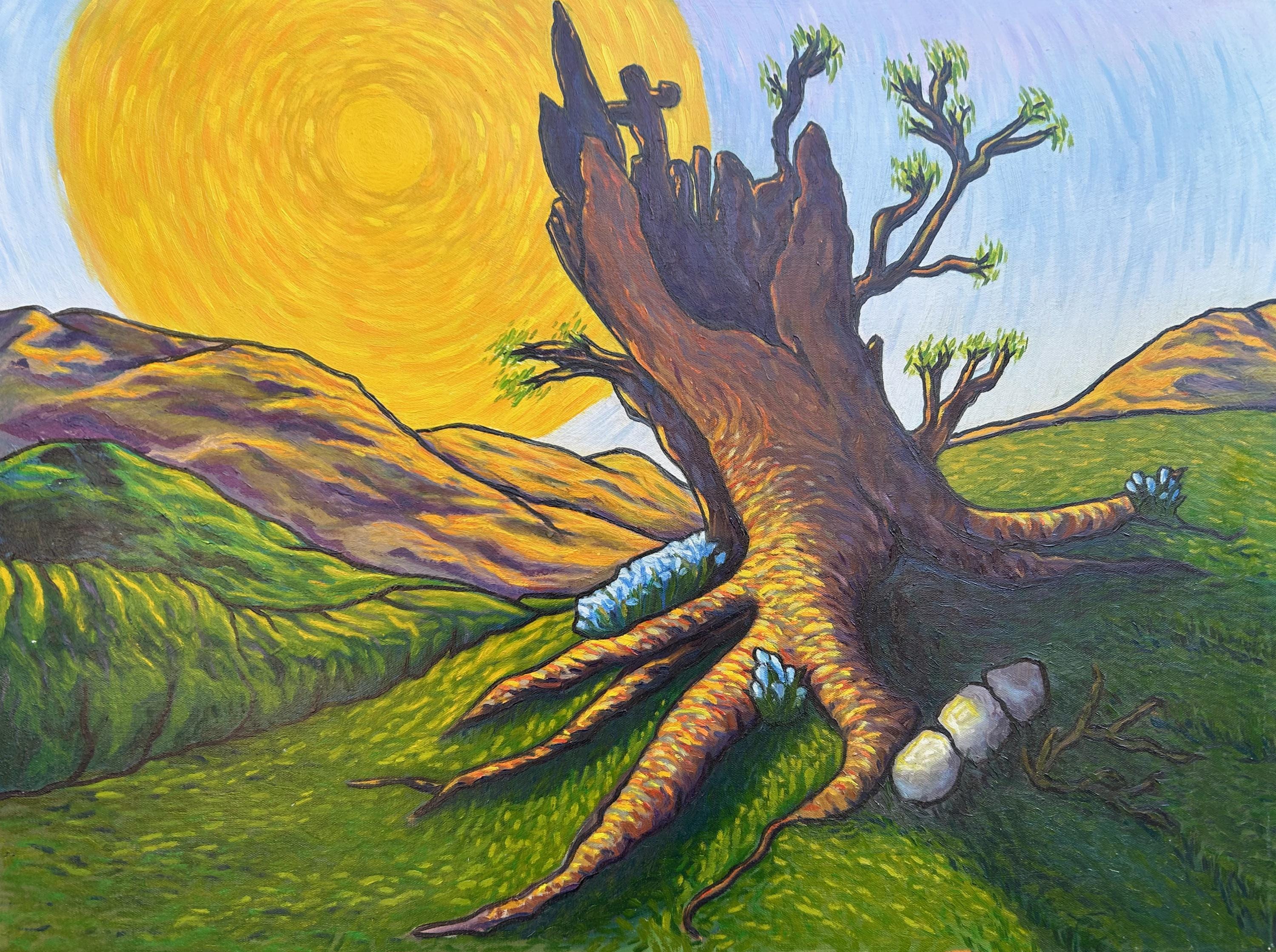 A landscape in my bold colourful style of psychedelic impressionism.